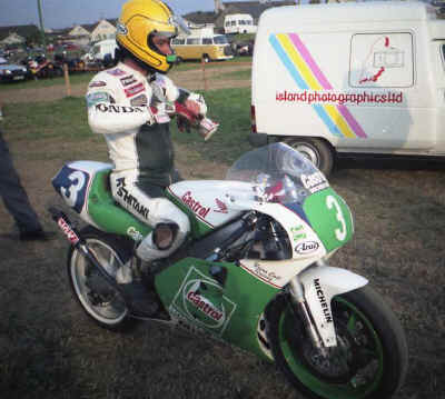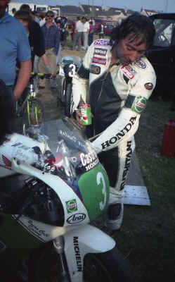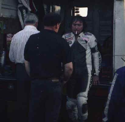 Zwischen den Rennen gönnte er sich auch mal eine Zigarette | Sein Bruder Robert Dunlop hier nach seinem dritten Platz 1992 in der Senior-TT auf einer Werks-Norton mit Wankel-Motor |