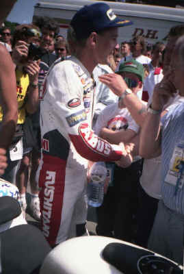 Joey Dunlop, TT-König auf der Isle Of Man Hier nach einem 250er-Rennen im Rahmen der TT92 in Castletown/IoM |