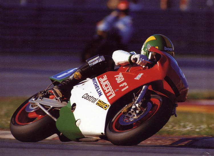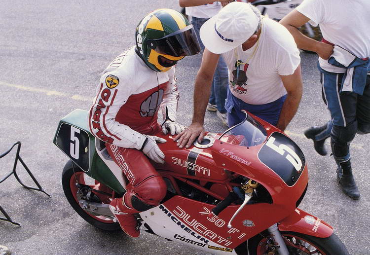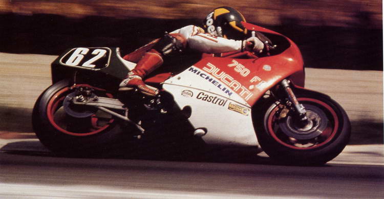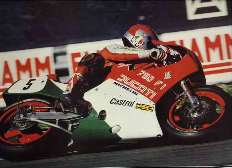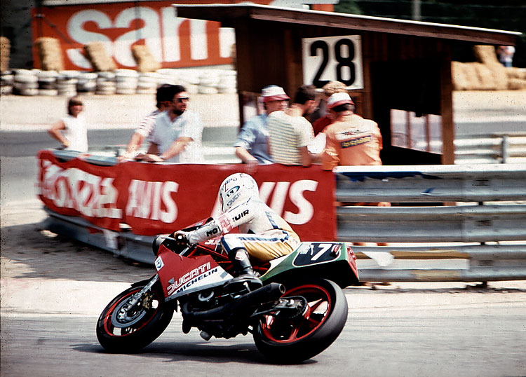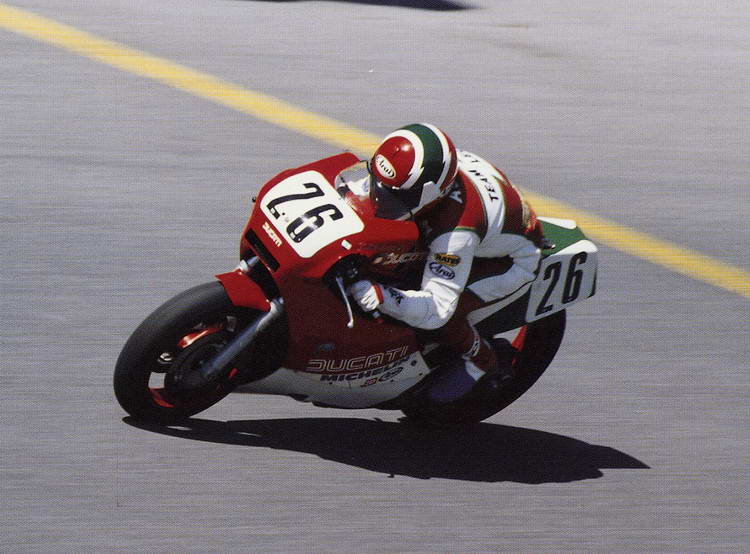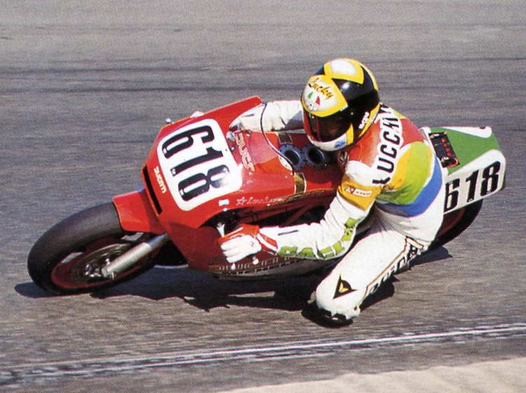 Lucchinelli 1985 mit der Werks-750er auf dem Weg zum Sieg in Imola |