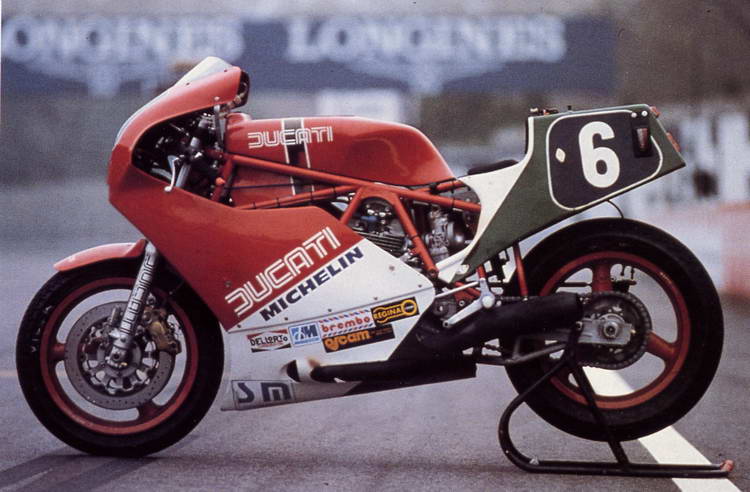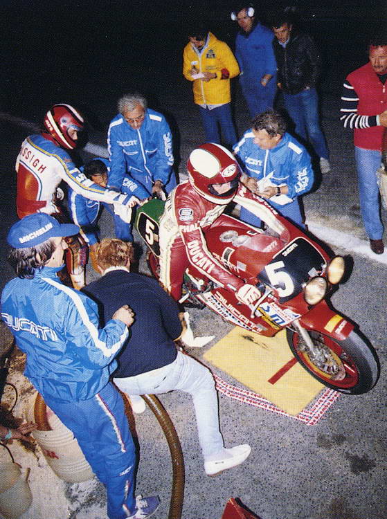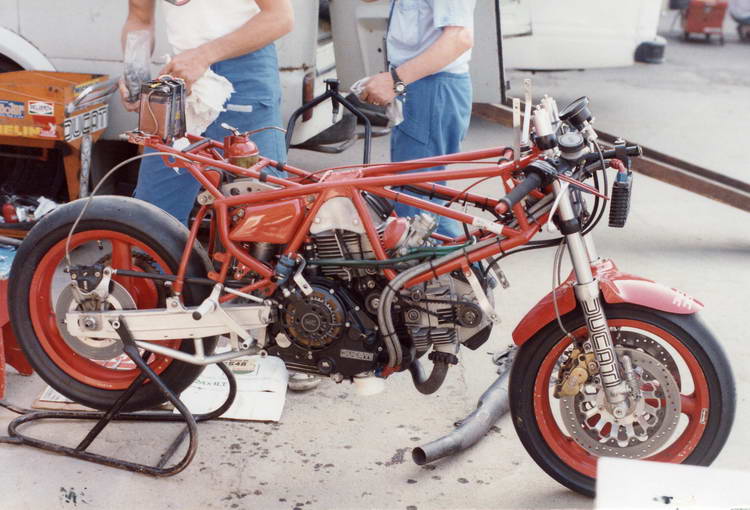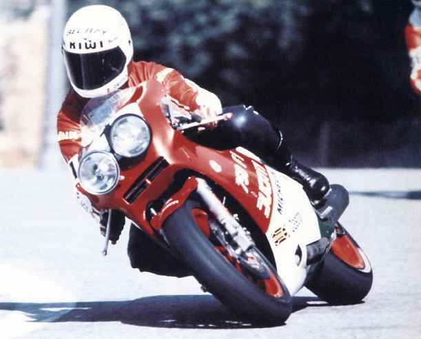 Rennmaschine von 1984 nach den Tests durch Tony Rutter und Walter Villa |