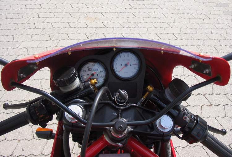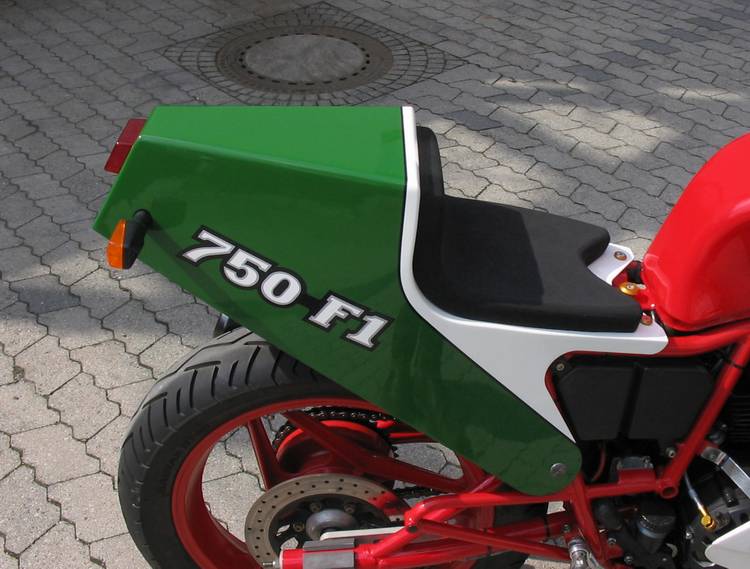 Am Anfang war die Begegnung mit einer Ducati 750 F1, aber das Geld hat noch nicht gereicht und als es dann gegangen wäre, gab es keine fabrikneuen Maschinen mehr. Also hat mir mein damaliger Händler eine neue 750 F1 Laguna Seca aus Italien geholt. Das war echt der absolute Wahnsinn, auch die Vorstellung 1 1/2 Jahre Überstunden zu machen um das Ding bezahlen zu können. Meine damalige Freundin und jetzige Frau Uli hat später eine gebrauchte 750 F1 aus Heidenheim bekommen. Also sind wir ein paar Jahre mit unseren Ducatis blendend gelaunt nach Hockenheim oder Zeltweg gedonnert. Danach kam eine 750 SS Bj. 91, eine 916 der 1. Serie (für die hab ich blöderweise die F1 drangegeben), eine Scrambler 450, eine 450er Rennmaschine (Zeltweg), eine Königswellen-Mille Bj. 86 in einem super schönen Zustand, hab ich dann leider weggegeben, danach kam der Hausbau und ich wurde wieder schwach. So nun war eine Ducatifreie Zeit angesagt, ist aber echt nicht weiter zu empfehlen. Also wuchs in mir der Entschluss: Es soll wieder eine F1 her. Natürlich war keine zu haben, aber dann nach einiger Zeit fanden wir eine im Internet. Also ab nach Augsburg, angesehen, unverschraubter Zustand und gekauft. Die erste Fahrt ging zu meinem Ducati-Händler und inzwischen langjährigen Vertrauten. Die Jungs haben dann alles gecheckt und noch einige Details wie Zahnriemen (samt Lager) und die eine oder andere Optimierung vorgenommen. Da mich aber schon damals an der Laguna Seca, welche ein sehr netter Ducati-Liebhaber von mir gekauft hat, das breite Heck gestört hat, musste nun an der F1 das Heck weichen, aha da geht's lang. Die TT war als Vorbild genau das, was mir und meinem Freund Robert vorschwebte. Ohne seine tatkräftige und ca. einen Winter andauernde Hilfe hätte ich alles nicht so perfekt hingebracht. Aluminiumheck exakt nach TT-Höckerform, nur vorne passend auf den F1-Rahmen, der Rahmen professionell gekürzt, aber das Originalrahmenheckteil als Option zum dranschrauben. Also fahren je nach Lust und Laune mit dem F1- oder dem TT-Heck. Natürlich eigentlich und überhaupt nur mit TT-Heck. Vielen Dank Robert, der sucht übrigens derzeit auch eine F1 (mit TT-Höcker!!!)...Also nun lasst uns diese tollen Motorräder genießen...